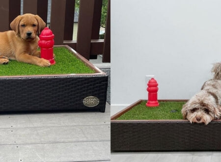 Worried your puppy or dog won’t get the hang of Porch Potty? The included scenting fire hydrant speeds up potty training for both puppies and older dogs alike. Simply wipe down the included scenting fire hydrant with a paper towel coated in your dog’s urine. This will help them recognize Porch Potty as their new potty spot and trigger their natural instinct to go.